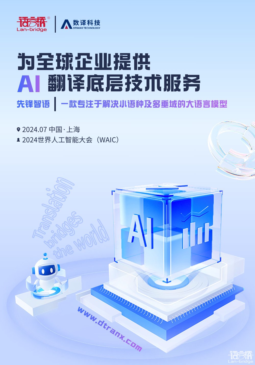 模型吸納傳統(tǒng)機(jī)翻技術(shù)的特性與大語言模型卓越的語義理解能力,讓翻譯結(jié)果更加流暢、生動(dòng)、易懂。先鋒智語提供200多種語言、50余個(gè)垂直領(lǐng)域的專業(yè)翻譯能力,支持 20多種文件格式處理,滿足多樣化場(chǎng)景的翻譯需求。通過API集成,用戶可實(shí)現(xiàn)產(chǎn)品全方位的翻譯功能。此外,也可依托先鋒智語平臺(tái)訓(xùn)練專屬 AI 翻譯引擎,滿足企業(yè)定制化多語言翻譯需求。語言橋展位位于H2-C639,現(xiàn)場(chǎng)更有精美禮品,歡迎大家前來指導(dǎo)交流。如有產(chǎn)品咨詢或觀展交流,請(qǐng)聯(lián)系:18380229636。7月4日,我們上海世博展覽館見!