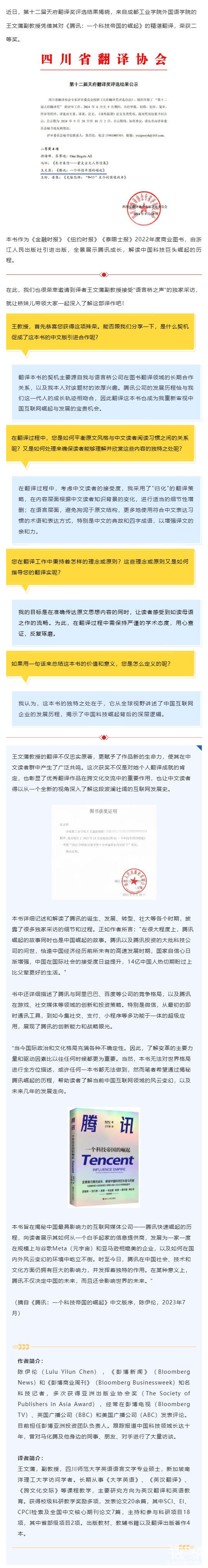 第十二屆天府翻譯獎 | 王文蒲《騰訊:一個科技帝國的崛起》獲二等獎