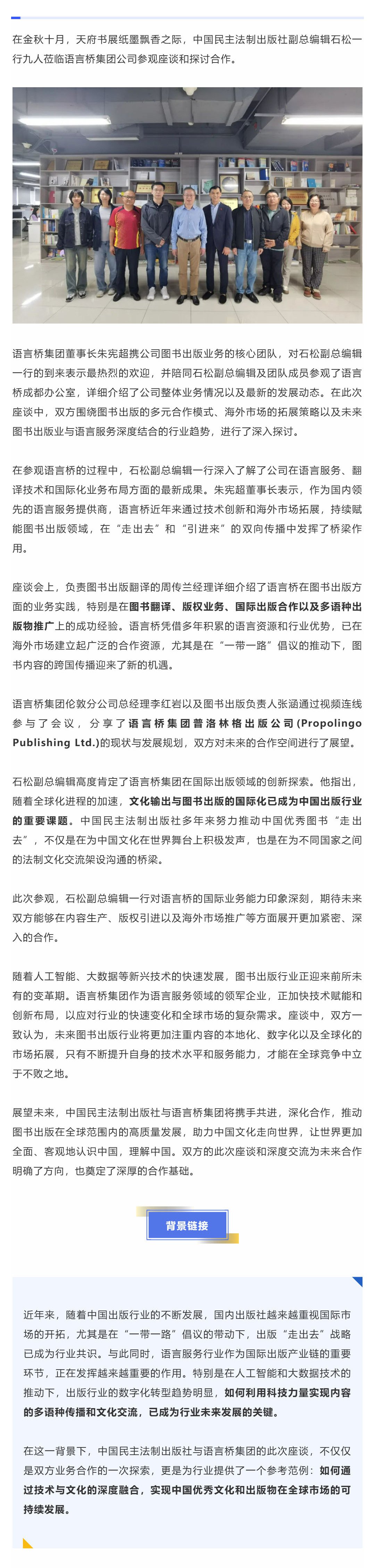 中國民主法制出版社蒞臨語言橋,共探圖書出版國際合作