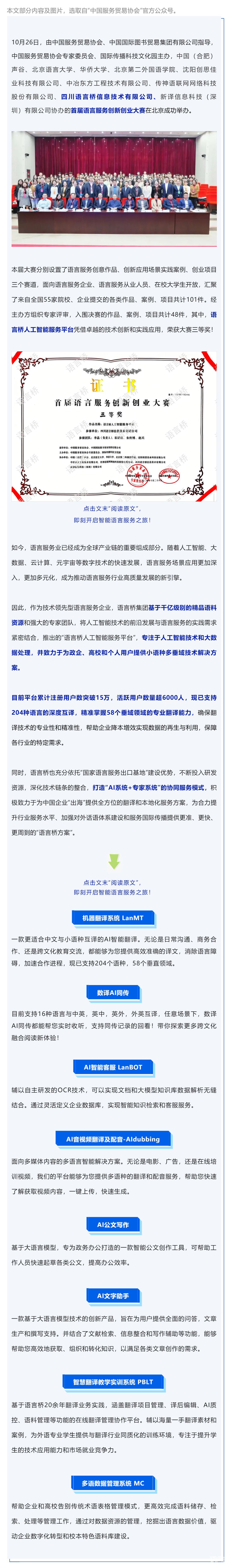 語言橋人工智能服務平臺榮獲首屆語言服務創新創業大賽三等獎