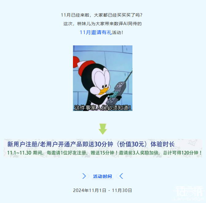 "更多活動內(nèi)容請掃碼關(guān)注語言橋之聲公眾號相關(guān)推送 或直接復(fù)制鏈接地址: https://aitongchuan.dtranx.com 在瀏覽器中打開獲取"...[查看更多]