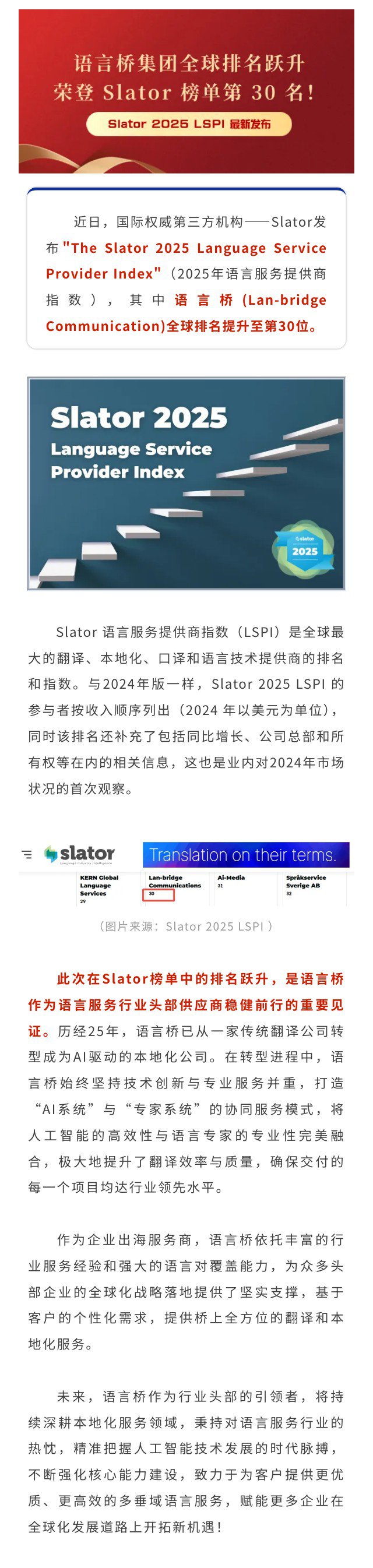 實力領航!語言橋集團榮登 2025 slator 榜單第 30 名!