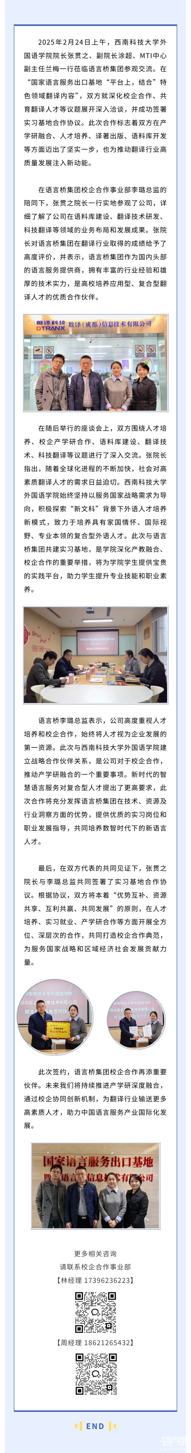 語言橋集團與西南科技大學外國語學院簽署實習基地協議